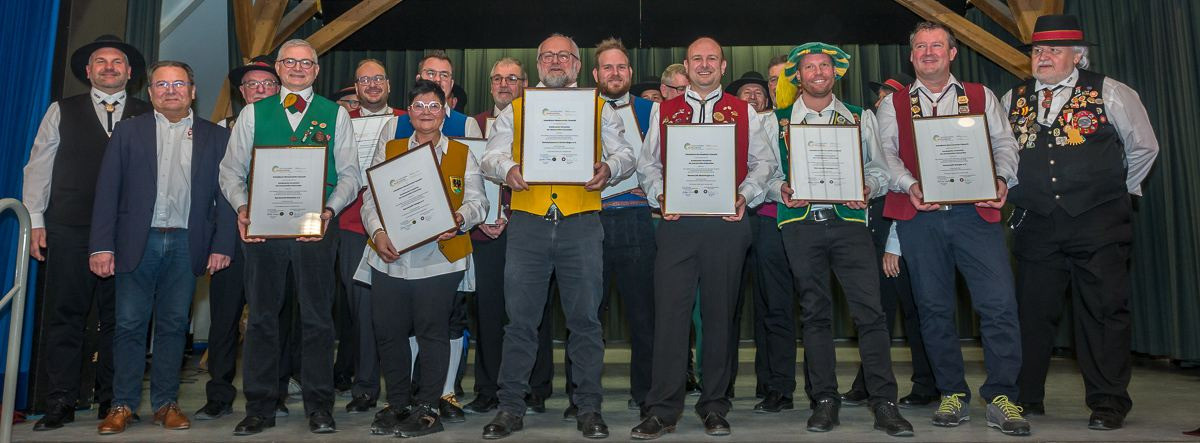 Ein weitere Programmpunkt war die Verleihung der Urkunde über die Anerkennung des örtlichen Brauchtumes des Immatriellen Kulturerbes der UNESCO an weiter 13 Zünfte unserer Vereinigung.